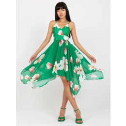 Zelené obálkové šaty bez ramienok s kvetmi .