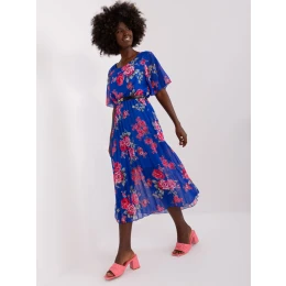 Kobaltové plisované kvetinové šaty .