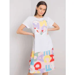 Bílé a světle růžové volné šaty s potisky.