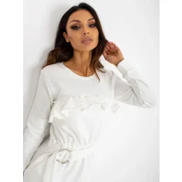 Ecru mini teplákové šaty s vreckami a opaskom.