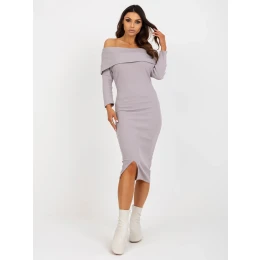 Svetlofialové midi základné šaty s pruhmi.