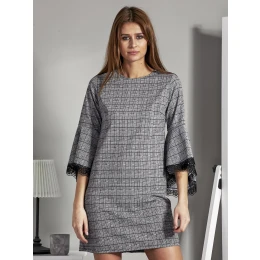 Sukienka czarno-biała ze wzorem i ozdobnymi rękawami