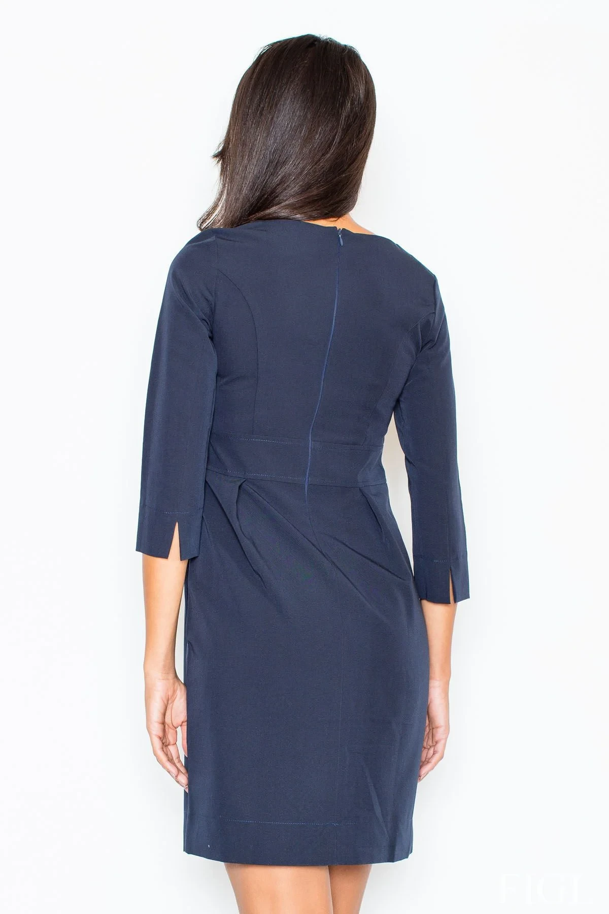 Finezyjna sukienka, idealna na zbliżający się sezon. Wykonana z wysokiej jakości tkaniny, za sprawą luźniejszego kroju doskonale tuszuje wszelkie niedoskonałości figury. Posiada rękawy o długości 3/4 oraz odcięcie w talii. Idealna zarówno do pracy, jak i na wieczorną randkę czy rodzinną uroczystość. Sukienka dostępna w kilku kolorach. Zapinana z tyłu na suwak.