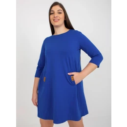 Kobaltové mini plus size šaty s vreckami Dalen .