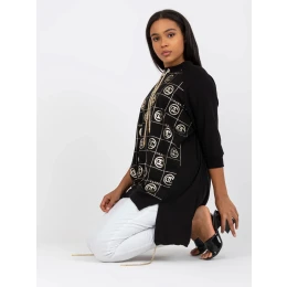 Čierna blúzka plus size s dlhším zadným dielom.