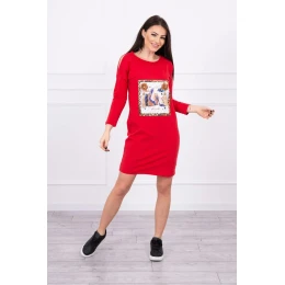 Šaty s 3D grafikou a ozdobnými volánky červené
