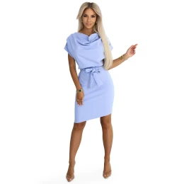 šaty s asymetrickou sukní a páskem MODRÉ model 21151834 - numoco