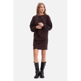 šaty s bočními záhyby tmavá čokoláda model 21379815 - BeWear