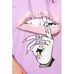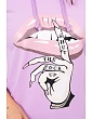 Šaty s dlhším chrbtom a farebnou potlačou fialovej farby