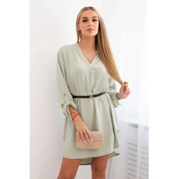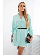 Šaty s dlhším chrbtom a pásom tmavej mentolovej farby