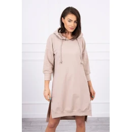 Šaty s kapucňou a dlhším chrbtom béžové