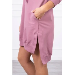 Šaty s kapucňou a dlhším chrbtom tmavo ružové