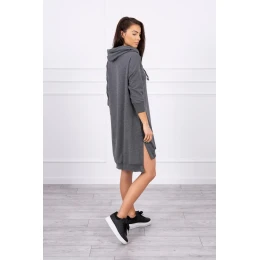 Šaty s kapucňou a dlhším chrbtom v grafitovej farbe