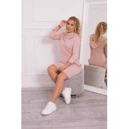 Šaty s kapucí a kapsami tmavě pudrově růžové