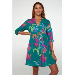Šaty na knoflíky s krátkými rukávy a výstřihem do V, v uvolněném střihu. Vyberte si chladivé, bavlněné květinové šaty na teplá letní rána.