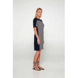 Šaty s krátkými rukávy a širokým kulatým výstřihem, v uvolněném střihu. Letní, námořnický potisk, ideální na dovolenou.