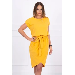 Šaty s obálkovým spodným dielom v horčicovej farbe