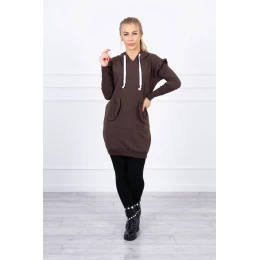 Šaty s ozdobnými volánky a kapucí v hnědé barvě