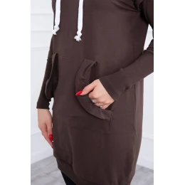 Šaty s ozdobnými volánikmi a kapucňou v hnedej farbe
