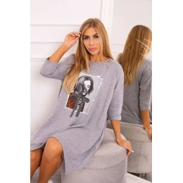 Šaty s potlačou a rozšírenou spodnou časťou šedej