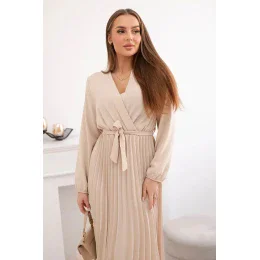 Šaty s viazaným plisovaným lemom béžové