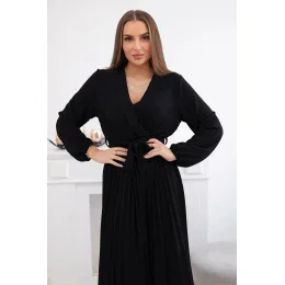 Šaty s viazaným plisovaným lemom čierne