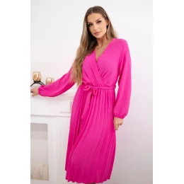 Šaty s viazaným plisovaným lemom ružové