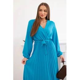 Šaty s viazaným skladaným lemom tyrkysové