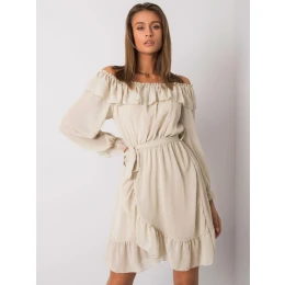 OCH BELLA Béžové šaty s dlouhým rukávem.