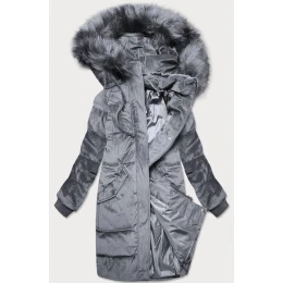 Šedá dámská manšestrová zimní bunda s kapucí model 21773185 - Libland