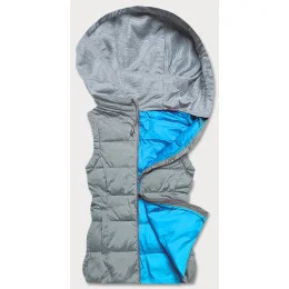 Šedo-svetlo modrá dámska vesta s látkovou kapucňou (DW-21604)