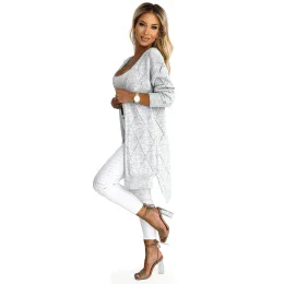 Pridanie recenzie k Šedý dámský kardigan přehoz přes oblečení s delší zadní částí a s ažurovým vzorem model 18854393 - numoco basic