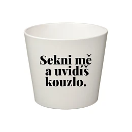Bílý keramický květináč s vtipným nápisem „SEKNI MĚ A UVIDÍŠ KOUZLO.“ je ideálním doplňkem pro všechny milovníky humoru a bylinek/rostlin. Hravý text pobaví a dodá Vašemu domovu odlehčenou, originální atmosféru.