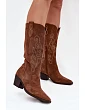 Zamszowe Kozaki Kowbojki Damskie Na Obcasie Camel Karira