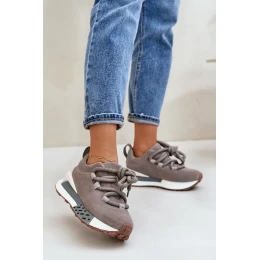 Semišové dámské sneakersy na platformě s šněrováním Artiker šedé model 21671668 - Boto