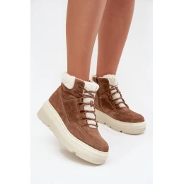 Zamszowe Śniegowce Damskie Z Kożuszkiem Na Platformie Vinceza 95354 Camel
