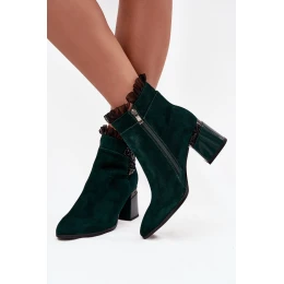 Elegantní dámské kotníkové boty vyrobené z přírodního semiše jsou ideální kombinací stylu a pohodlí. Model je zateplený, což ho činí ideálním na chladnější dny. Boty se zapínají na zip, což usnadňuje jejich obouvání a sundávání. Stabilní podpatek typu sloupce zajišťuje pohodlí při nošení a zároveň krásně zeštíhluje postavu. Na straně je ozdoba, která přidává eleganci, a horní část chodidla zdobí jemně našitá síťovina, která celkový vzhled dodává výjimečný ženský charakter. Skvělá volba na podzimní a zimní outfity. Při výběru velikosti doporučujeme řídit se tabulkou velikostí. Při výběru velikosti se řiďte tabulkou velikostí.