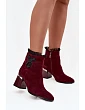 Semišové kožené dámské kotníkové boty na podpatku s ozdobou vyhřívané D&A MR52-127 bordó