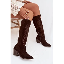 Kozaky kovbojky vyrobené z přírodního semiše jsou vhodné pro ženy, které ocení módní vzhled a pohodlí. Měkká kůže jim dodává elegantní charakter a zároveň zajišťuje pohodlné nošení. Model s našitým zipem na spodní straně límce usnadňuje obouvání a zvyšuje funkčnost. Stabilní, zúžený podpatek ve tvaru sloupku zaručuje pohodlí při chůzi a jemně zeštíhluje postavu. Špičaté nosy dodávají celku výraznost a podtrhují westernový charakter bot. Jsou to stylové kozaky, které skvěle doplní jak šaty, tak kalhoty, a vytvářejí působivé každodenní i slavnostní outfity. Při výběru velikosti se řiďte tabulkou velikostí.