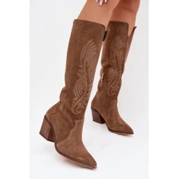 Kozaky kovbojky vyrobené z přírodního semiše jsou vhodné pro ženy, které ocení módní vzhled a pohodlí. Měkká kůže jim dodává elegantní charakter a zároveň zajišťuje pohodlné nošení. Model s našitým zipem na spodní straně límce usnadňuje obouvání a zvyšuje funkčnost. Stabilní, zúžený podpatek ve tvaru sloupku zaručuje pohodlí při chůzi a jemně zeštíhluje postavu. Špičaté nosy dodávají celku výraznost a podtrhují westernový charakter bot. Jsou to stylové kozaky, které skvěle doplní jak šaty, tak kalhoty, a vytvářejí působivé každodenní i slavnostní outfity. Při výběru velikosti se řiďte tabulkou velikostí.