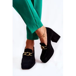 Zamszowe Czółenka Z Ozdobnym Łańcuchem Laura Messi 2444 Czarne