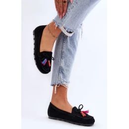Semišové Mokasíny S Mašlí A Třásněmi Černá Dorine