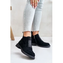 Semišové Nízké Boty Na Plochém Podpatku Zateplené D&A model 21674470 Černé - S.Barski