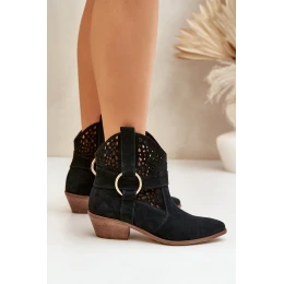 Semišové otvorené kovbojské topánky na podpätku Zazoo 2994 Black