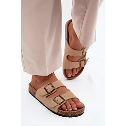 Semišové pantofle na korkové podrážce s přezkami béžové model 22120824 - Boto