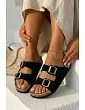 Semišové pantofle na korkové podrážce s přezkami Černé Tavira