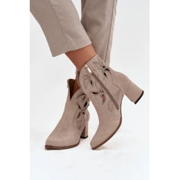 Zamszowe Ażurowe Botki Damskie Na Słupku Zazoo 3647 Cappuccino