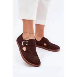 Semišové polobotky barefoot dámské s přezkou model 21703112 čokoládové - Zazoo