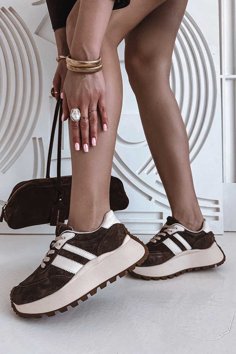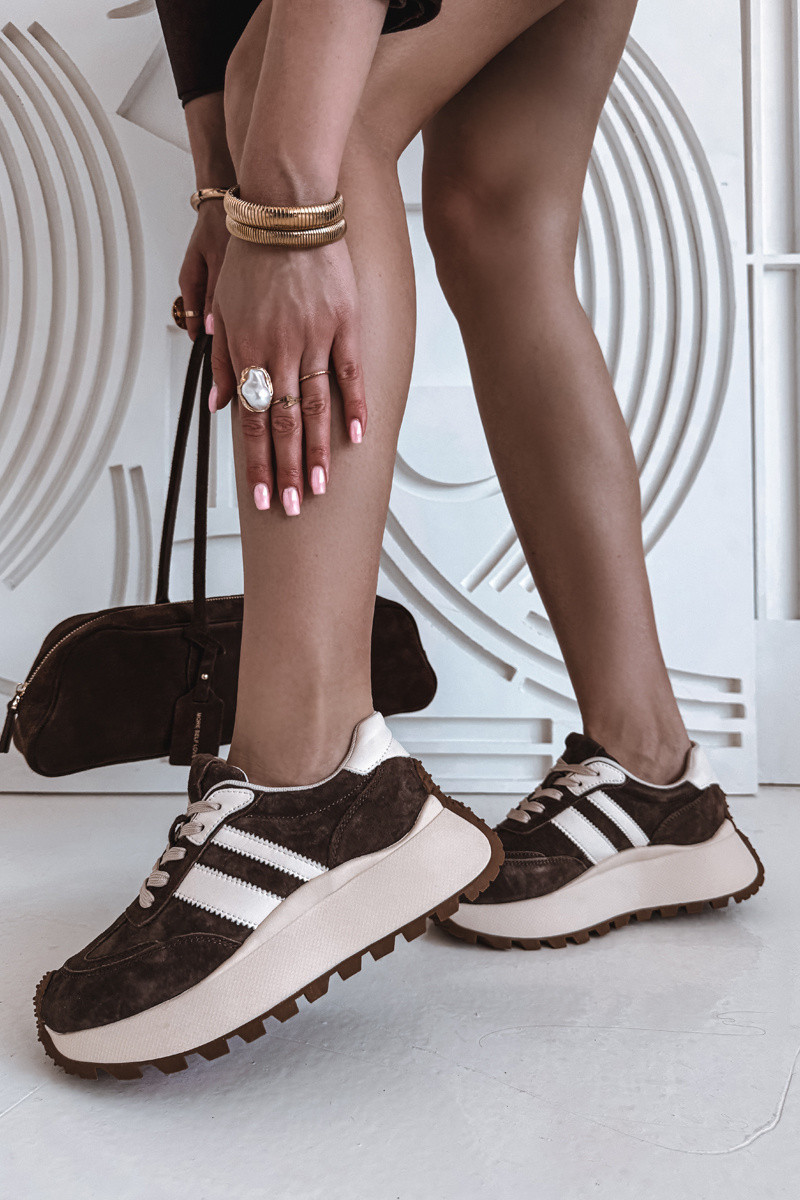 Semišové tenisky na masivní platformě model 22031726 Čokoládové - D&A