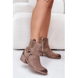 Zazoo 60477 Zamszowe Ocieplane Botki Na Obcasie Beżowe